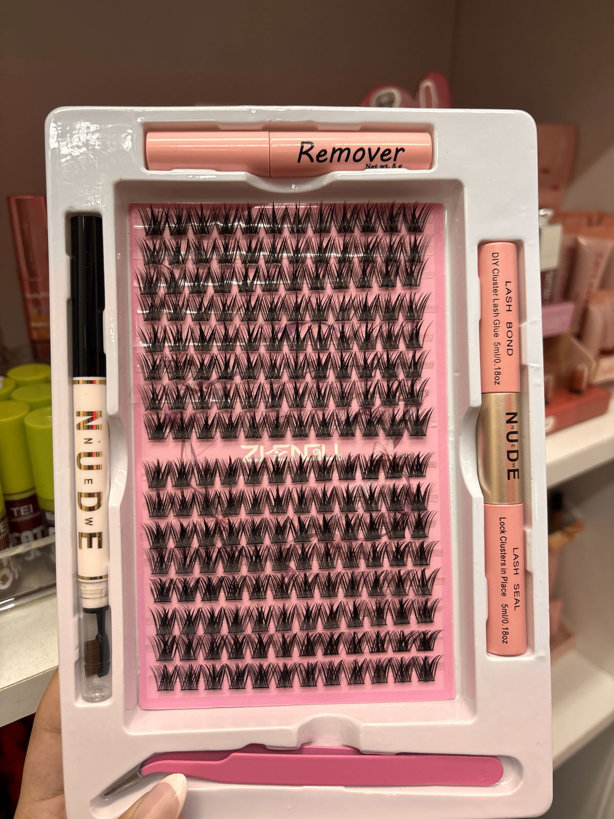 Incluye pegamento, sellador, pinza, removedor y delineador